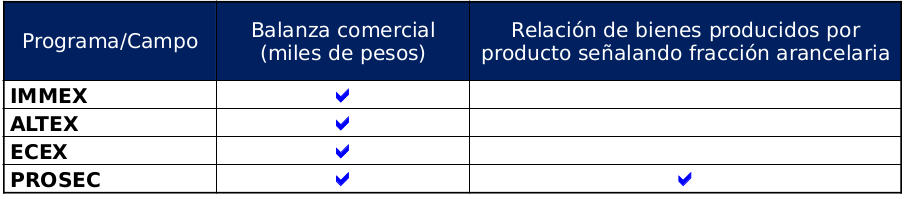Empresas que tengan autorizado únicamente el Programa PROSEC adicionalmente deberán de declarar los bienes producidos por fracción arancelaria y de acuerdo a los sectores que tienen autorizados en su programa.