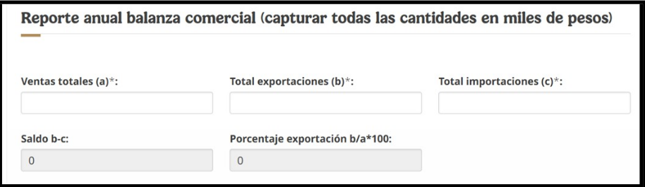 • Las empresas con programa IMMEX, únicamente deberán llenar los campos a) ventas totales y b) total de exportaciones, aún y cuando cuenten con algún otro programa de fomento.
