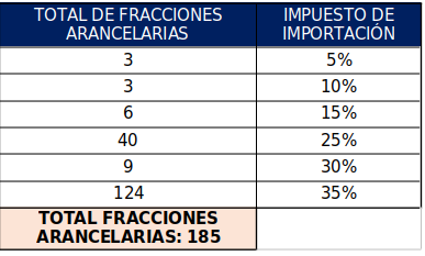 • SE MODIFICAN LOS ARANCELES DE 185 FRACCIONES ARANCELARIAS